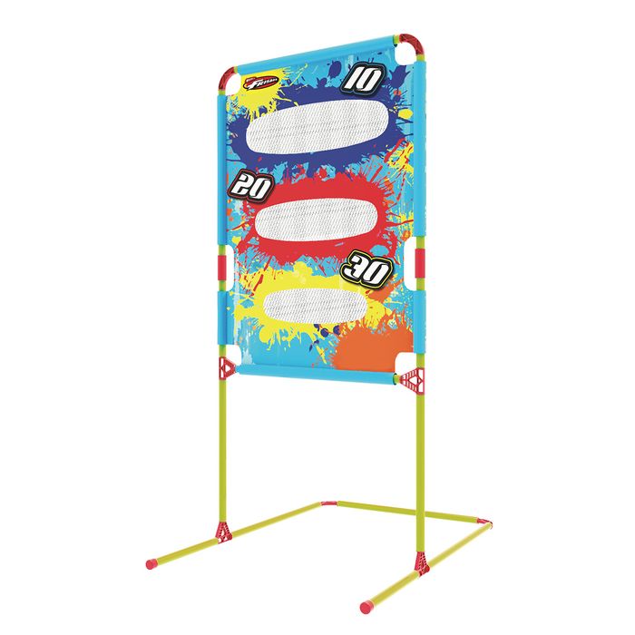 - Fabric Frisbee target catcher with sturdy frame and 3 Frisbees