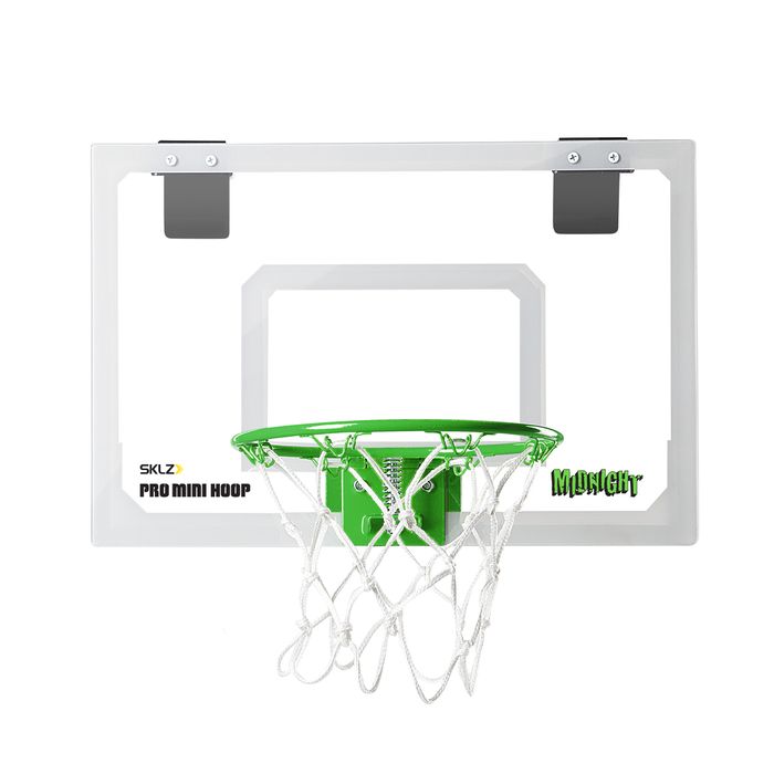 Don't quit playing just because the lights go out. Pro Mini Hoop Midnight has the look and functionality of a pro-grade basket with the added fun of a glow-in-the-dark hoop and ball so the plays can last all night. Super-durable over-the-door hoop is perfect for the home, office or dorm.