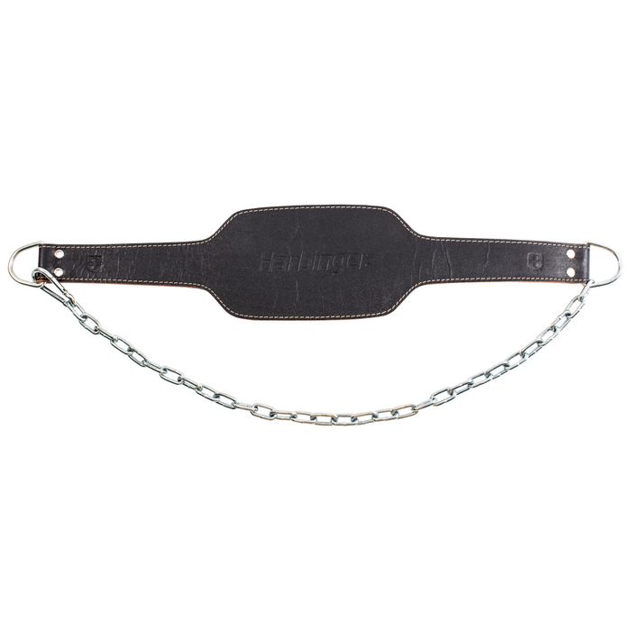 The Harbinger Leather Dip Belt features a 34" steel chain and carabiner mechanism, which allows weight to be easily added for chin-ups and dips, helping to develop power and strength in triceps and chest. The contoured design provides back and upper body support, and the one piece all-leather construction provides maximum durability.