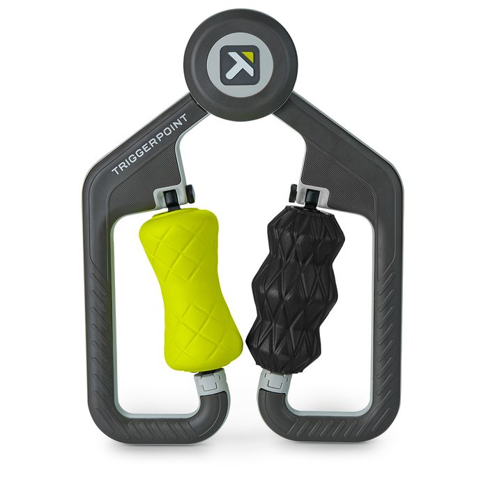 Experience the FUSE, a handheld deep tissue rolling massage tool. Designed for ease-of-use with a spring-loaded hinge, you can massage two muscle pairs at once for a more efficient recovery.